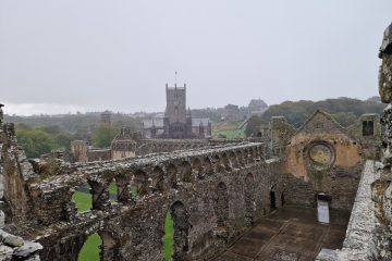 On Tuesday we made our way South out of Haverfordwest, over Cleddau Bridge and the Cleddau Ddu (river), through Pembroke Docks, and into Pembroke for the first chunk of sightseeing for the day. Once again it was looking like rain, so we donned our coats and walked up the hill to the town centre.