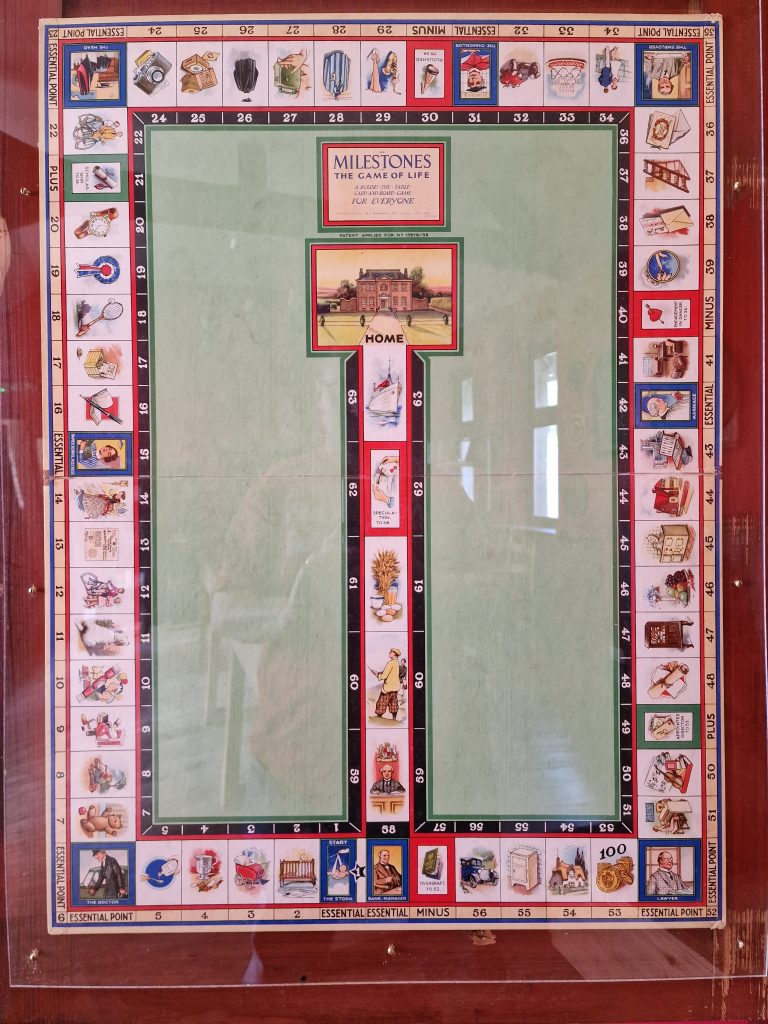 More interesting however, in one of the out-buildings, there was a toy museum! I immediately messaged Dad with a picture of the antique bridge boards, and liked the look of “Milestones” (1938), “Motor Chase Across London” (1950), and “Campaign” (1935). I’d play these!